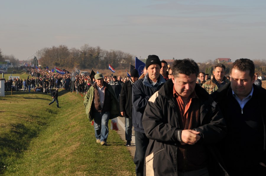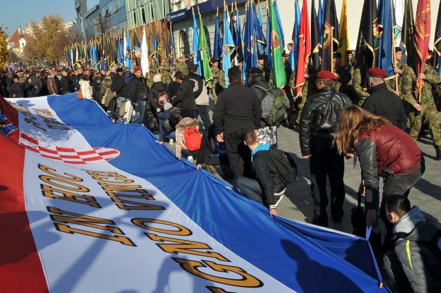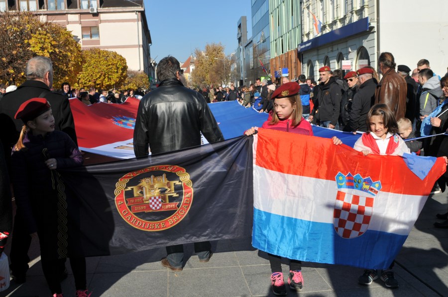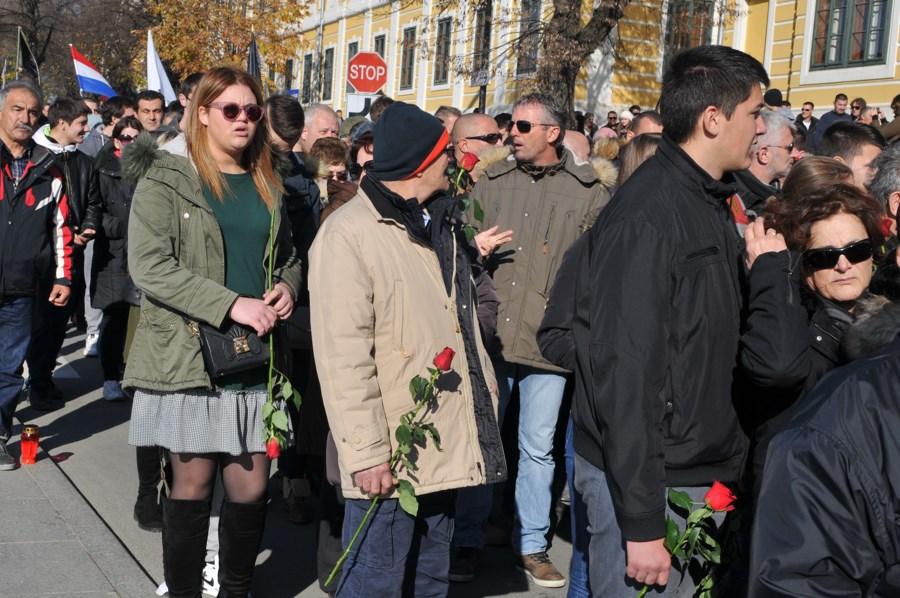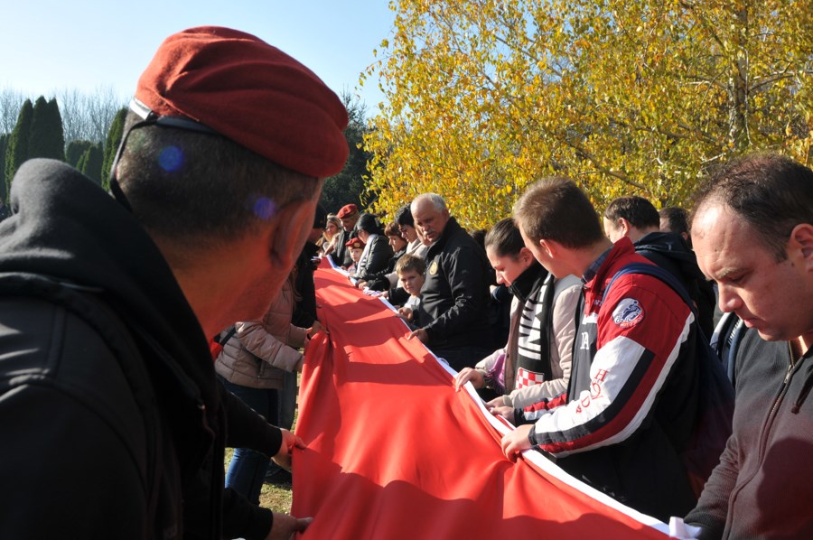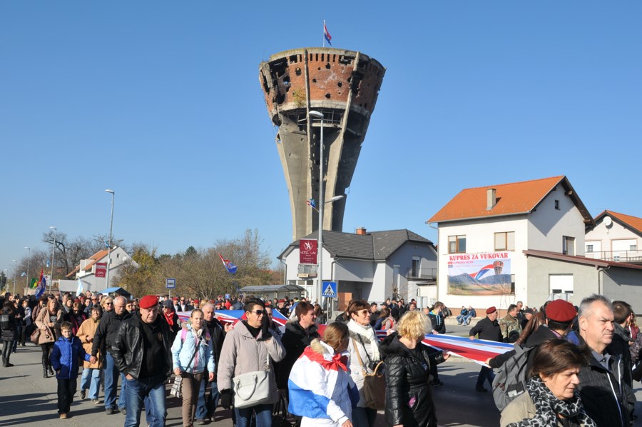 Ako je prije pet godina na 20. obljetnici po procjenama bilo više od 100 tisuća ljudi u Vukovaru, slobodnom procjenom može se reći da ih je danas bilo više od 150 tisuća. Nepregledna kolona ljudi tekla je od bolnice do Memorijalnog groblja. Zbog velike gužve na tom malom prostoru dio ih je išao natrag dok je kolona i dalje stizala. Nakon cijelonoćnog putovanja autobusom iz Metkovića stižemo u Vukovar u ranim jutarnjim satima. Dočekalo nas je prohladno jutro, a u grad su se slijevale rijeke autobusa, kombija, osobnih automobila, a za ovu prigodu stigao je i vlak sa braniteljima iz Splita i Zagreba. Službeni program započeo je ispred bolnice odakle je u 10:30 krenula Kolona sjećanja prema Memorijalnom groblju, koju su predvodili hrvatski branitelji Vukovara i članovi obitelji poginulih, ubijenih i nasilno odvedenih hrvatskih branitelja Vukovara. Kako bi dostojno obilježili ovu obljetnicu izradili smo hrvatsku zastavu dimenzija 20 x 4,5 metara s natpisom u sredini „IN HOC SIGNO VINCES“ - U ovom ćeš znaku pobijediti, slogan iz 4. stoljeća koji se nalazi na grbu IV. gardijske brigade, te na hrvatskom „Pod ovim znakom i u ratu i u miru“. Planirali smo izraditi i veću zastavu, ali zbog nedostatnih financija, unatoč brojnim zamolbama, zahvaljujući, pak, potpori Dubrovačko-neretvanske županije, uspjeli smo je završiti dan uoči obilježavanja. U iščekivanju suboraca iz Splita, koji su stigli vlakom, strpljivo smo čekali u blizini mosta vukovarskog heroja Jean-Michela Nicoliera. Zajedno potom nastavljamo dalje u tišini i s ponosom na licu. Putem nam se priključuju i ostali građani koji su željeli nositi zastavu. Pored nas su i članovi KUD-a Župa Gospa Snježna iz Vida i KUU Škrapa Momići. Po dolasku na ulaz u Memorijalno groblje žrtava iz Domovinskog rata zbog velike gužve ulazimo bočno prema spomeniku, gdje na padini pored 938 bijelih križeva, od kojih svaki simbolizira jednu ekshumiranu žrtvu, razvijamo zastavu. U tijeku je bila sveta misa gdje pored bine na kojoj se odvijalo misno slavlje zatječemo članove Policijske udruge branitelja Policijske postaje Metković 1991, također pristiglih iz Metkovića. Na grobovima poginulih vukovarskih branitelja gore tisuće svijeća, kao i kod spomen-obilježja te kamenih križeva na mjestu masovne grobnice. Kako autobusi još nisu vozili, pješice se vraćamo prema gradu i produžujemo do vojarne gdje se okrjepljujemo kuhanim grahom u iščekivanju autobusa koji stiže tek oko 18 sati jer ih nisu puštali sa Veleprometa, gdje je bilo veliko parkiralište za autobuse. Po dolasku autobusa iskrcavamo donaciju mandarina za osnovnu školu Mitnica, a potom nastavljamo prema Trpinjskoj cesti gdje zastajemo kod spomen-doma i pred spomenikom generalu Blagi Zadri gde palimo svijeću. Nakon razgledanja, umorni i iscrpljeni, nastavljamo put Osijeka na odmor. Sutra nastavljamo prema Slavonskom Brodu.