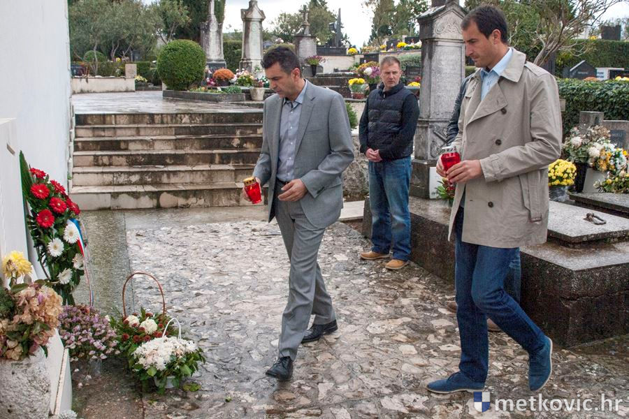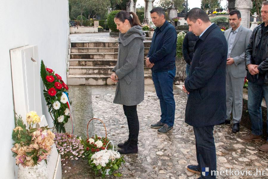 20.11.2016. - Izaslanstvo Grada Metkovića, na čelu s gradonačelnicom Katarinom Ujdur i njezinim zamjenikom te saborskim zastupnikom Nikolom Grmojom, jutros je na Gradskome groblju svetoga Ivana Nepomuka položilo vijenac i zapalilo svijeće pred spomen-pločom na naše sugrađane koji su u studenome 1944. strijeljani na tome i još nekoliko mjesta po gradu.