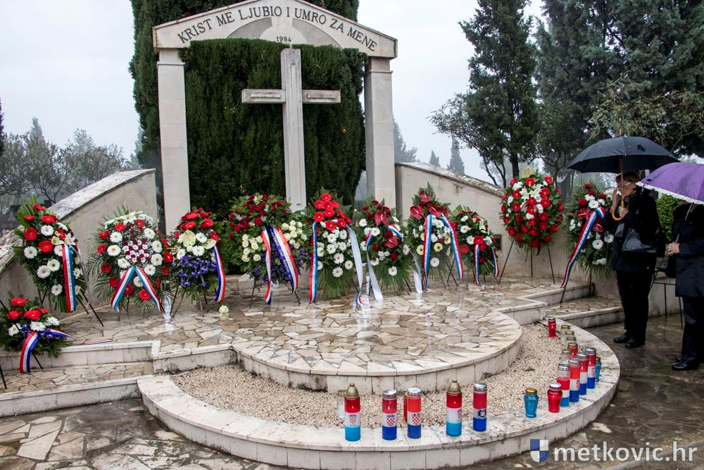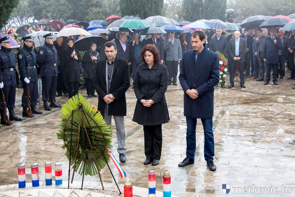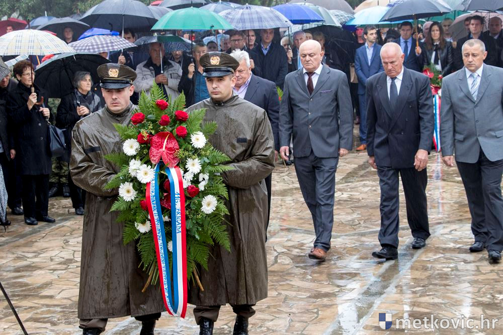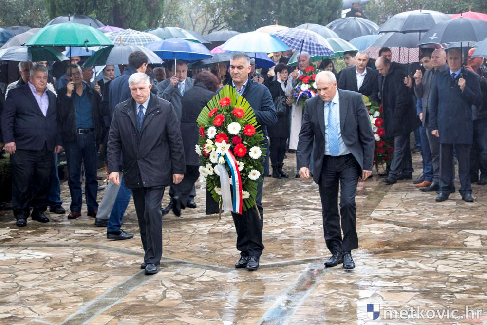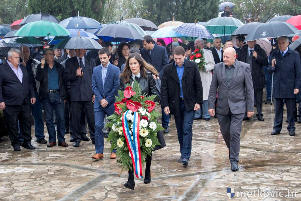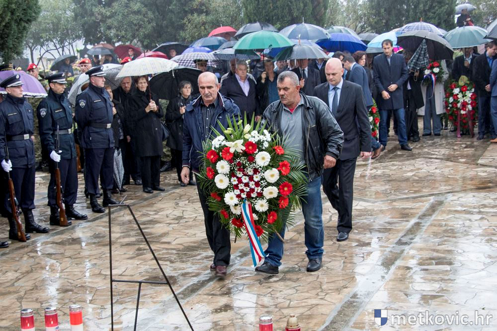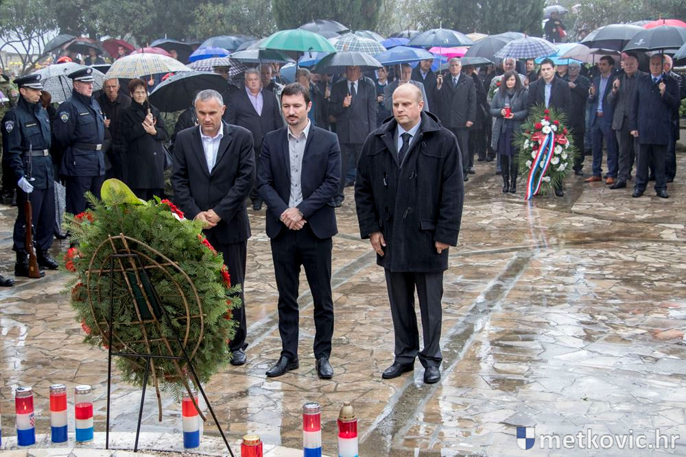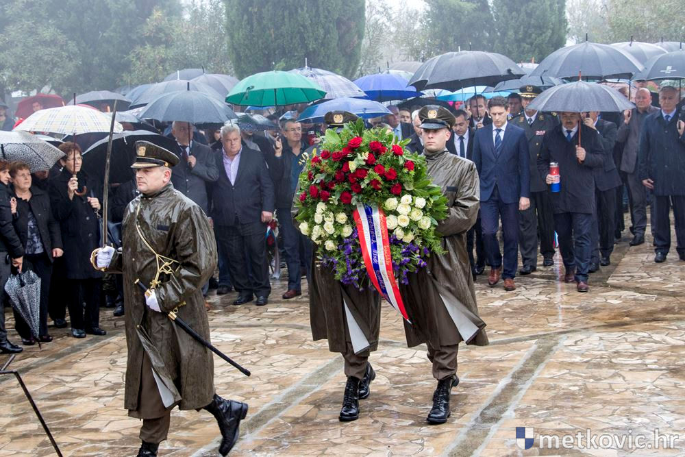 Ceremoniju polaganja vijenaca i zapaljenih svijeća pred Središnjim križem započeli su oni čija je bol najveća i koja nikada neće prestati – predstavnici udruga poginulih hrvatskih branitelja iz Metkovića, Opuzena, Ploča i Općine Slivno. Nakon njih, zajednički su vijenac položili predsjednik Sabora Božo Petrov, ministar unutarnjih poslova i izaslanik predsjednika Vlade RH Vlaho Orepić, izaslanik Predsjednice RH Ivan Krupec, a njima su se pridružili ministar pravosuđa Ante Šprlje, izaslanik potpredsjednika Vlade i ministra obrane te načelnika Glavnoga stožera Oružanih snaga RH brigadni general Ivan Beneta i Ivan Vukić, državni tajnik, izaslanik ministra hrvatskih branitelja. Slijedilo je izaslanstvo 116. brigade HV-a, koje su činili Nedjeljko Obradović, Josip Dragović, Dane Rendulić i Mijo Vukušić. Vijence i svijeće položili su još župan Nikola Dobroslavić, gradonačelnici i načelnici neretvanskih općina i gradova, predstavnici Općine Stolac i tamošnje braniteljske udruge te predstavnici metkovskih ogranaka političkih stranaka Mosta nezavisnih lista, HDZ-a, SDP-a, HSU-a i HNS-a.