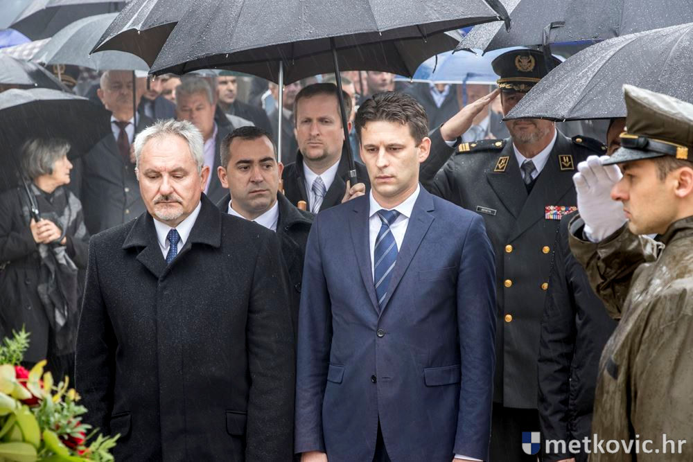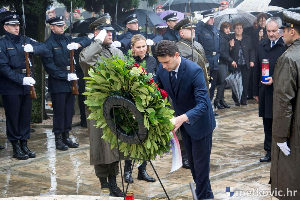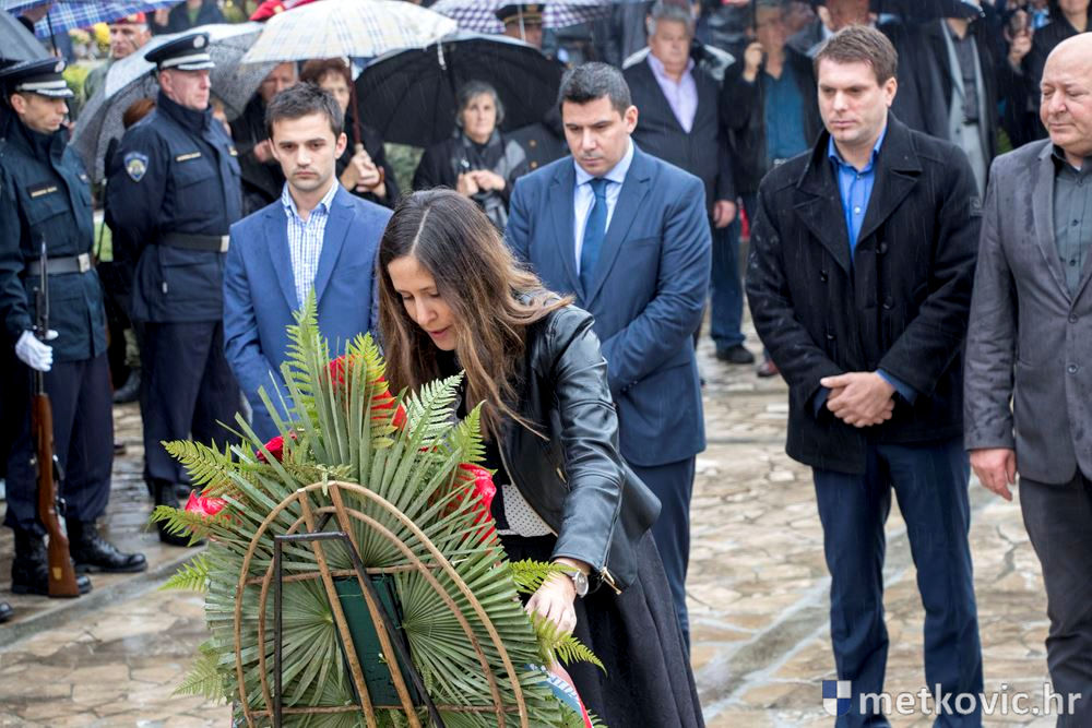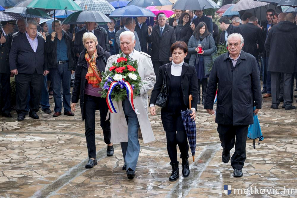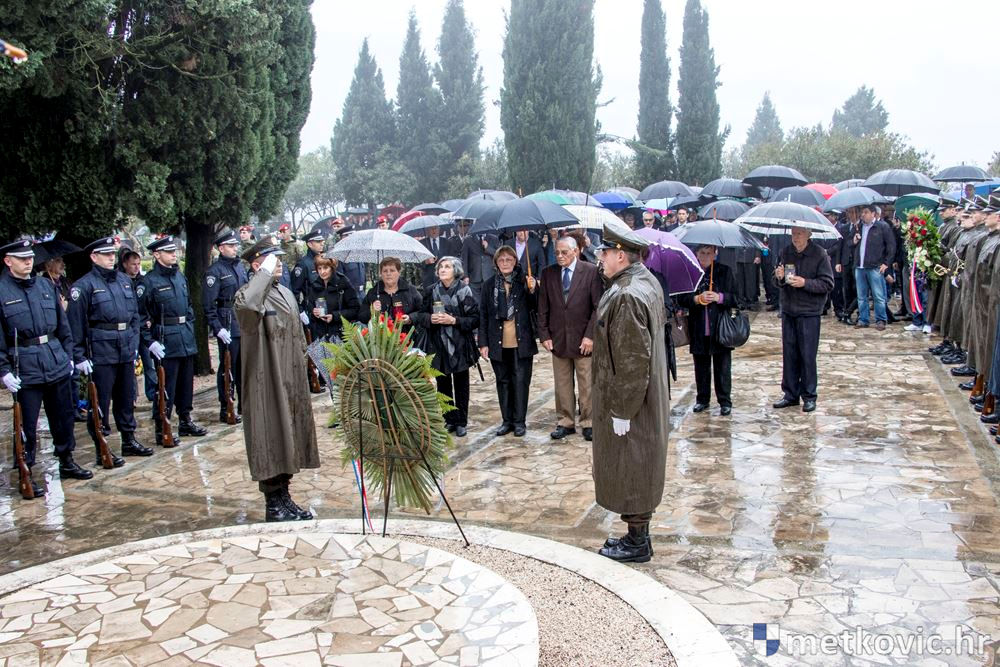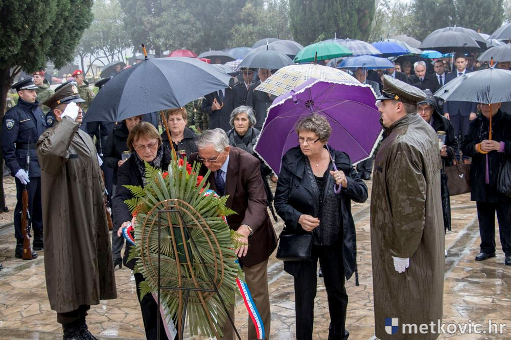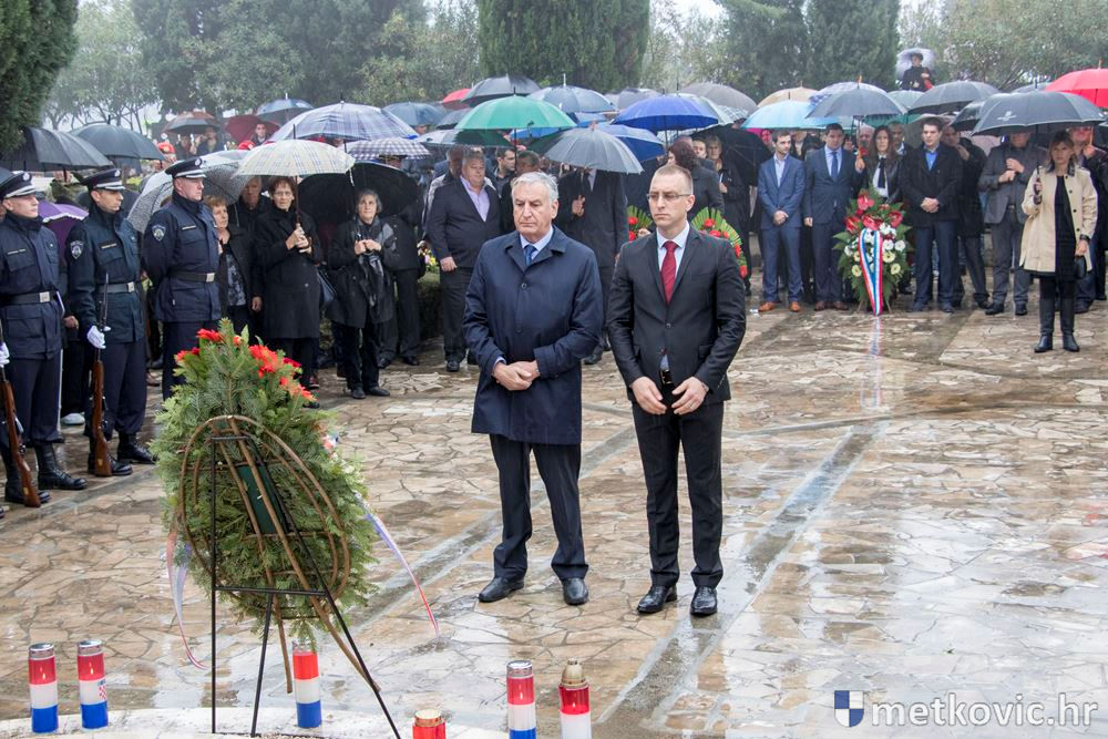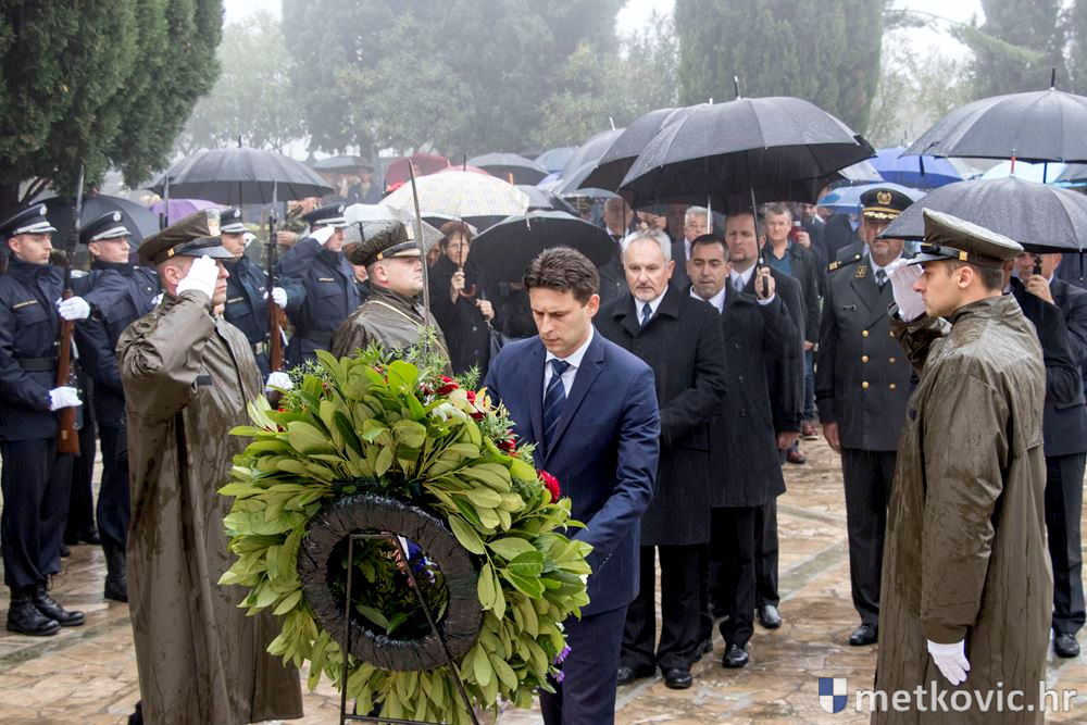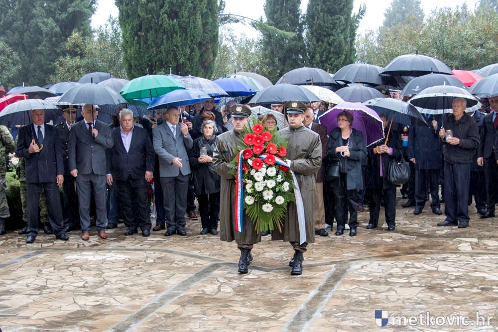 Ceremoniju polaganja vijenaca i zapaljenih svijeća pred Središnjim križem započeli su oni čija je bol najveća i koja nikada neće prestati – predstavnici udruga poginulih hrvatskih branitelja iz Metkovića, Opuzena, Ploča i Općine Slivno. Nakon njih, zajednički su vijenac položili predsjednik Sabora Božo Petrov, ministar unutarnjih poslova i izaslanik predsjednika Vlade RH Vlaho Orepić, izaslanik Predsjednice RH Ivan Krupec, a njima su se pridružili ministar pravosuđa Ante Šprlje, izaslanik potpredsjednika Vlade i ministra obrane te načelnika Glavnoga stožera Oružanih snaga RH brigadni general Ivan Beneta i Ivan Vukić, državni tajnik, izaslanik ministra hrvatskih branitelja. Slijedilo je izaslanstvo 116. brigade HV-a, koje su činili Nedjeljko Obradović, Josip Dragović, Dane Rendulić i Mijo Vukušić. Vijence i svijeće položili su još župan Nikola Dobroslavić, gradonačelnici i načelnici neretvanskih općina i gradova, predstavnici Općine Stolac i tamošnje braniteljske udruge te predstavnici metkovskih ogranaka političkih stranaka Mosta nezavisnih lista, HDZ-a, SDP-a, HSU-a i HNS-a.