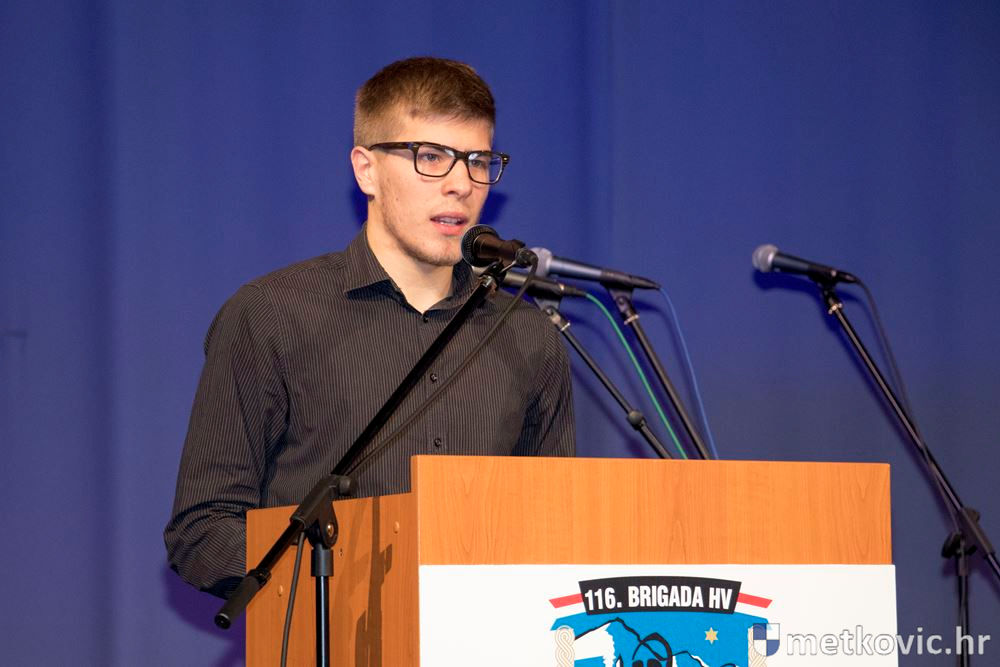 Za govornicu je prvo izašao maturant metkovske Gimnazije Ivan Bebić i pročitao Dječaci odlaze na vojnu Vladimira Pavlovića, pokojnoga hrvatskog književnika i pjesnika koji je nekada ravnao ustanovom u kojoj se akademija održavala. Potom je voditeljica programa Romana Gabrić na pozornicu pozvala Klapu HRM-a Sveti Juraj, koja je otpjevala hrvatsku himnu, a nakon minute šutnje za poginule branitelje pročitala je impresivan ratni put 116. brigade, nakon čega je Zoran Bebić Beba otpjevao njezinu himnu.