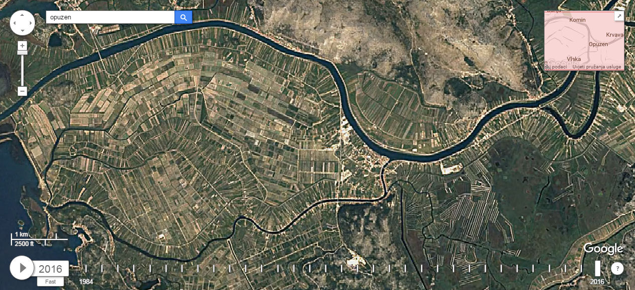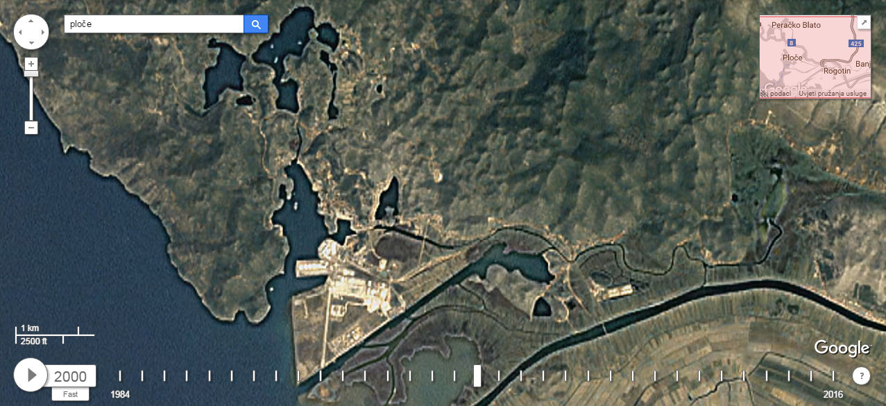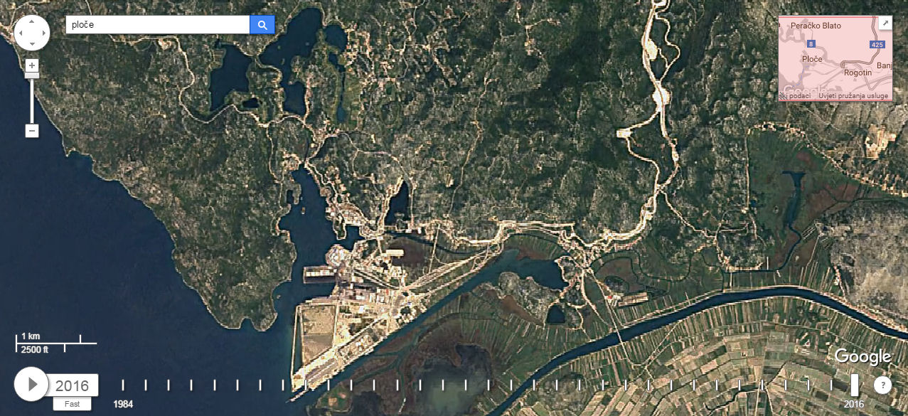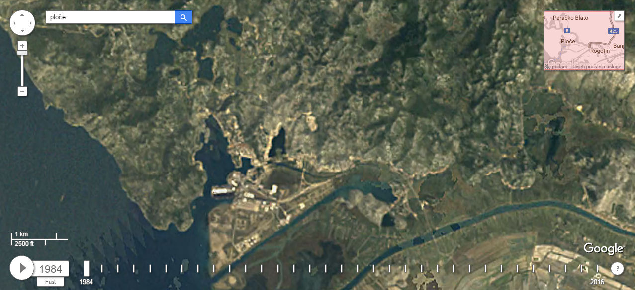 Premda se ne može zumirati kao kod „normalnoga“ Google Eartha, jer bi tada umjesto pet milijuna trebala valjda pet milijardi fotografija, ipak se može vidjeti što se sve događalo na terenu, ali i kako je napredovala tehnologija, tj. razlučivost fotografija. Mi smo za tri neretvanska grada izdvojili po tri fotografije u rasponu od 1984. do 2016. Kliknite na prvu da biste je uvećali i strjelicom desno na tipkovnici idite dalje.