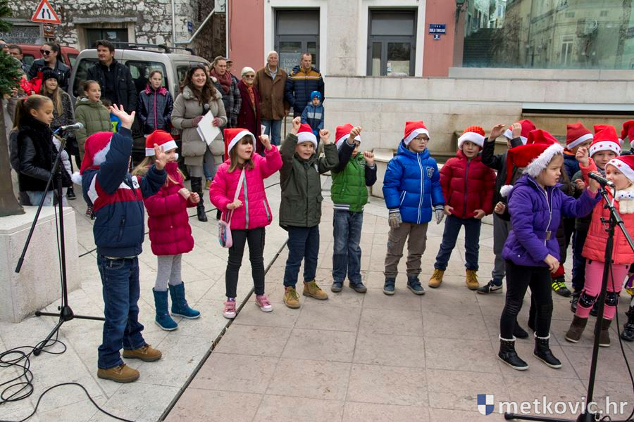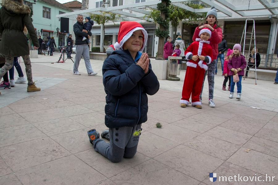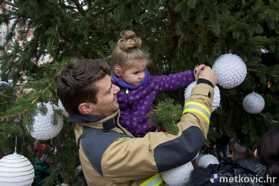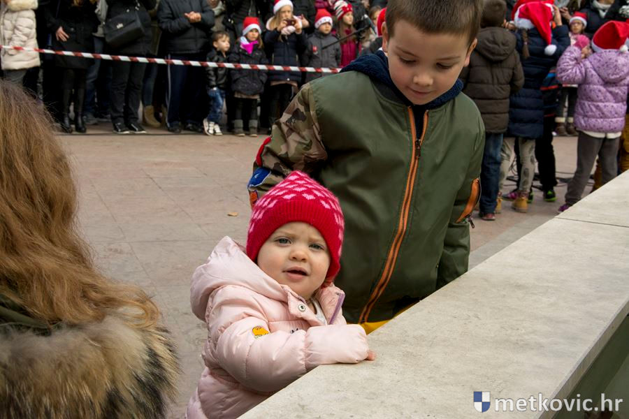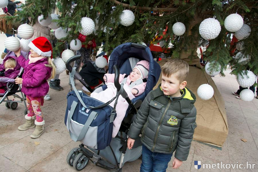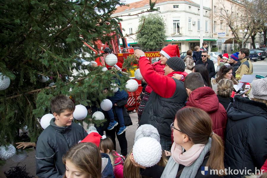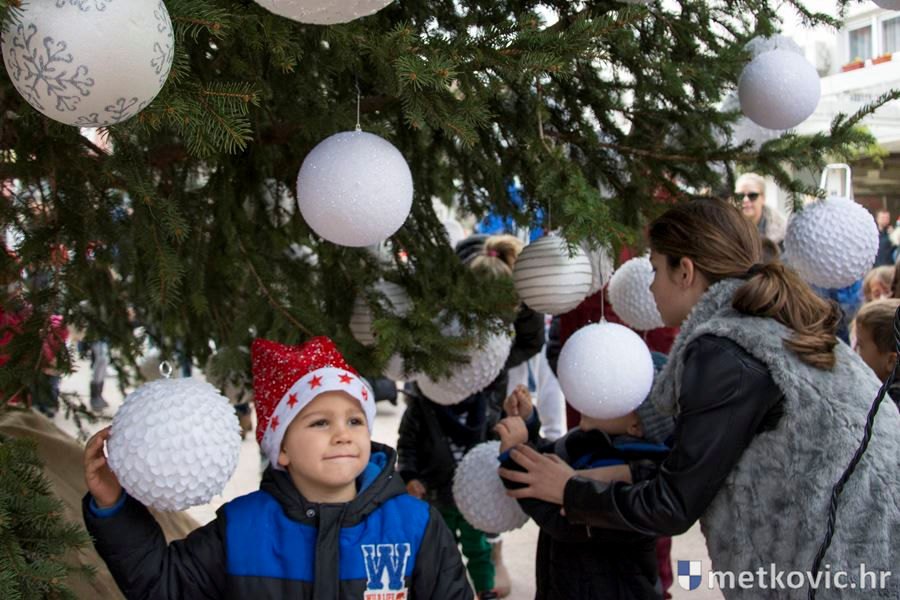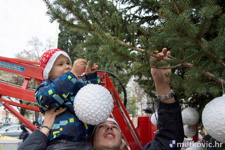 3.12.2016. - Na Trgu kralja Tomislava jutros je bilo šareno i veselo, a zašarenila su ga i razveselila djeca iz Dječjega vrtića Metković, kojima su se u ukrašavanju velike jele pridružila i druga djeca koju su roditelji doveli na Trg.
