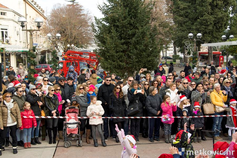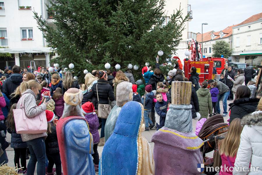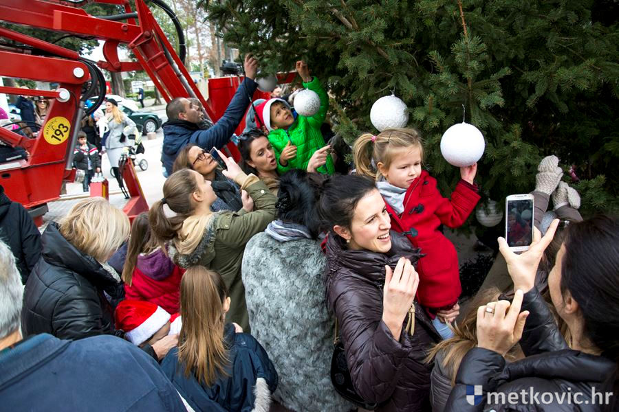 Pri ukrašavanju jele vrtićanima su se pridružili mališani iz DV Leut, učenici OŠ Stjepana Radića i OŠ don Mihovila Pavlinovića te štićenici Doma za odrasle osobe i rehabilitaciju Metković, sve uz asistenciju Javne vatrogasne postrojbe Metković. Na kraju su postavljene jaslice što su ih izradili otac i sin Ivica i Jakov Ivaniš Kulija. Veliku osammetarsku jelu darovala je obitelj Mate Glavinića Pilipa, dok je sve provedeno u organizaciji Grada Metkovića, Turističke zajednice Grada Metkovića i Ustanove za kulturu i sport Metković.